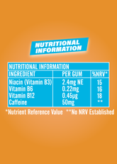 Each piece of Energy gum delivers 50mg of caffeine, combined with Vitamins B3, B6 and B12, designed for everyday moments when you need a lift – whether you’re starting your day or keeping things moving.